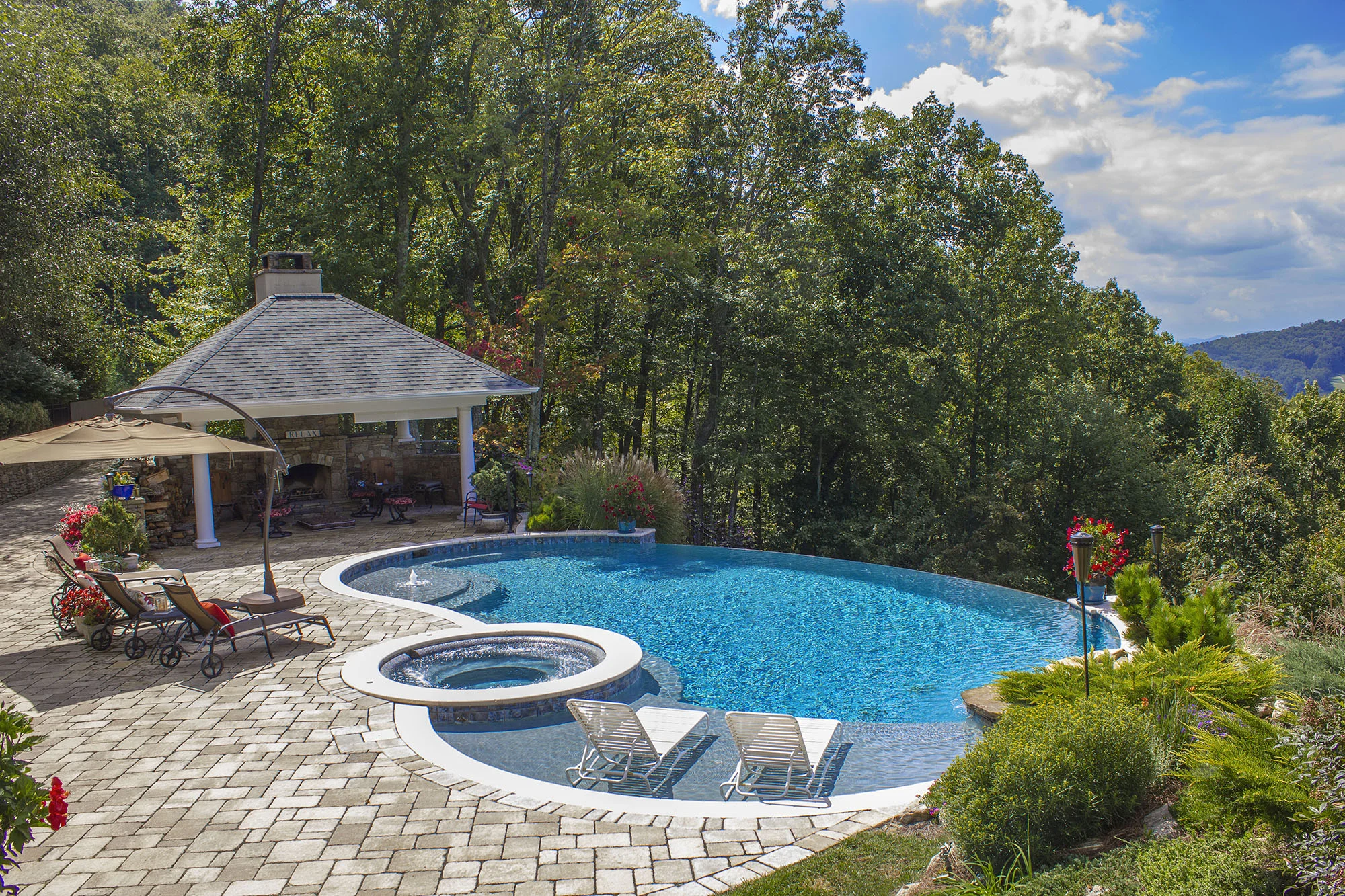 The Sunset Pool frames majestic mountain vistas and scenic sunsets while enjoying the pool, spa, wet decks or in-pool swim jets. With views all the way to Mt. Pisgah in the Blue Ridge Mountains, exercise, relaxation or simply lounging by the pool become that much more enjoyable and inspiring.